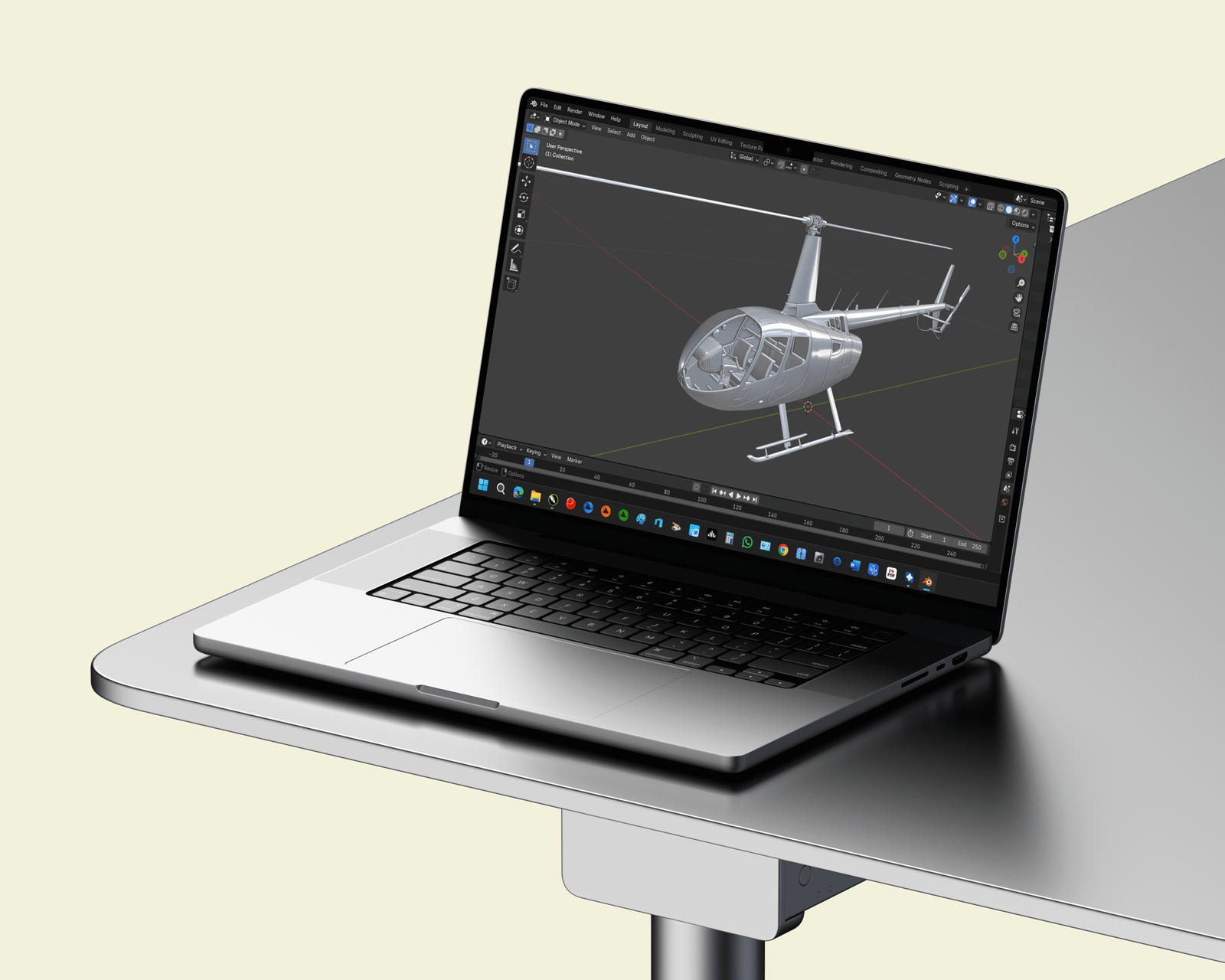 Modelamos a aeronave em CAD com base em referências reais. Entregamos o arquivo STL pronto para impressão.